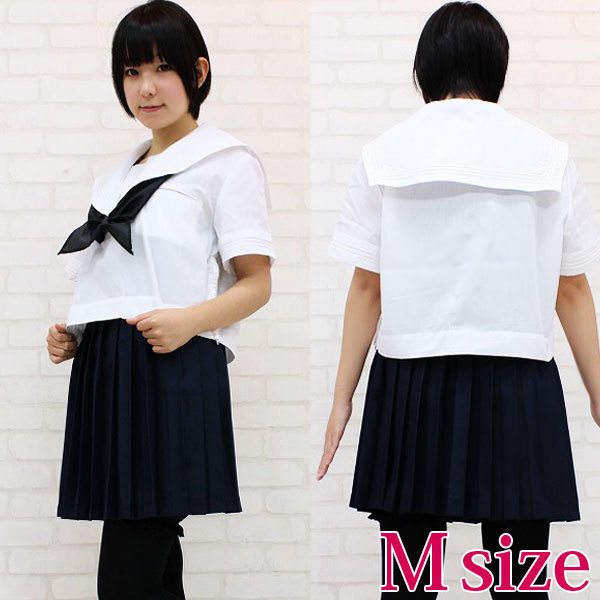 白いセーラー服に黒スカーフがマッチ!清楚で爽やかな制服コスチューム。