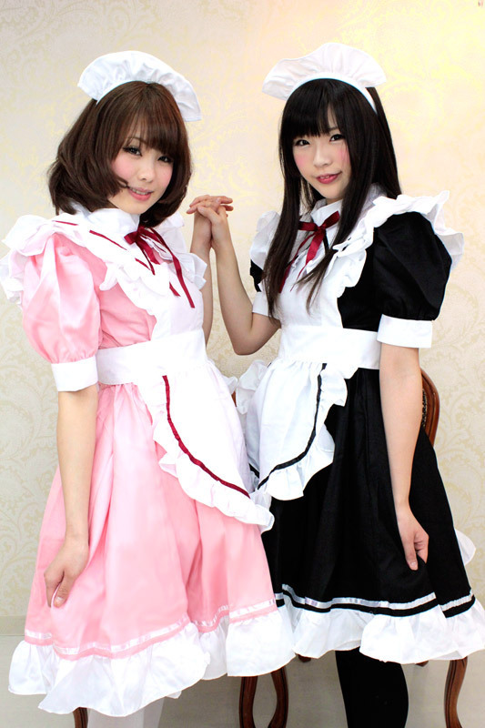 ピンクに馴染む白が乙女チックなワンピースのメイドさん衣装。