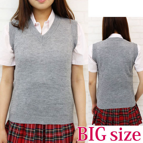 制服コスプレと相性抜群!オールシーズンOKなグレーの無地ニットベスト単品(BIG)。