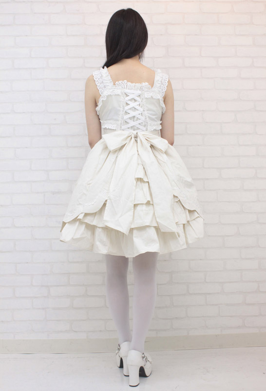 まるでお姫様のようなふんわり感で可憐にドレスアップ!後ろ姿も可愛いオフホワイトのジャンパースカート(BIG)。