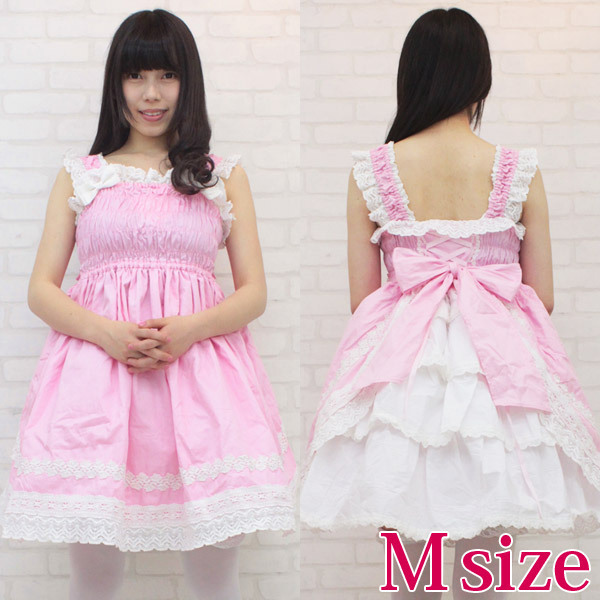 Mサイズ:B62〜92cm・W62〜102cm 丈:ジャンパースカート83cm セット内容:ジャンパースカート(横ファスナー、後ろ編み上げ、バストからウエスト部分シャーリングあり、肩紐ゴム入り、スカート部分裏地有り)