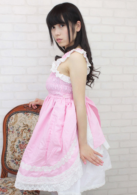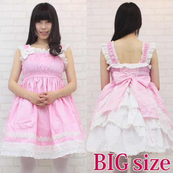 甘〜いロリピンクが可愛い!豪華なフリルレースで仕上げたシャーリングジャンパースカート(BIG)。