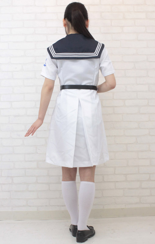 ちょっぴり長め丈の夏服ワンピースが清楚な印象!ベルトでウエストマークされるので脚長効果も抜群!もちろん紺色のスカーフもセットです。