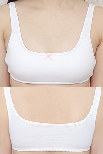 爽やかさ100%!胸元にちょこんと付いたピンクリボンが可愛らしい、純白のスポーツブラ単品(BIG)。