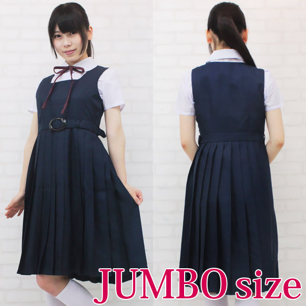 こちらは男性でもOKなジャンボサイズ!半袖シャツにジャンスカ、布製ベルトとリボンタイもセットになった、お手軽コスプレ衣装です。