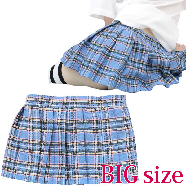 元気いっぱい!爽やかなブルーに格子が入った、BIGサイズの超ミニ丈チェックスカート。
