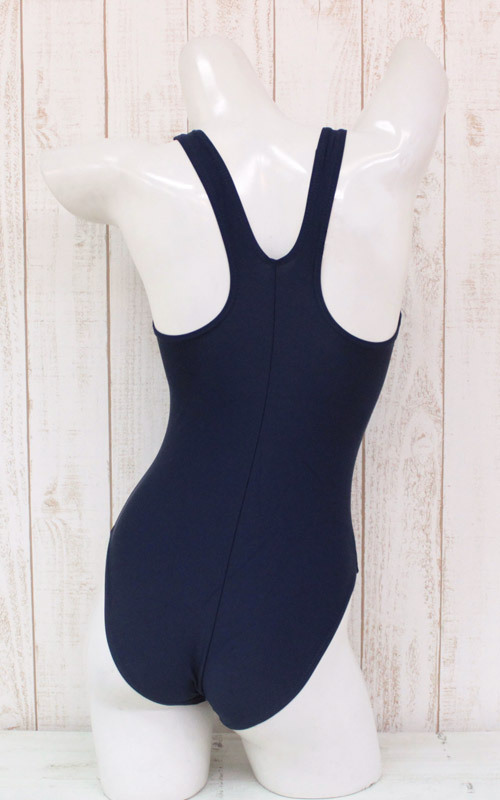 カラダのラインがくっきり見えちゃう、ちょっぴりセクシーな紺カラーのスク水。