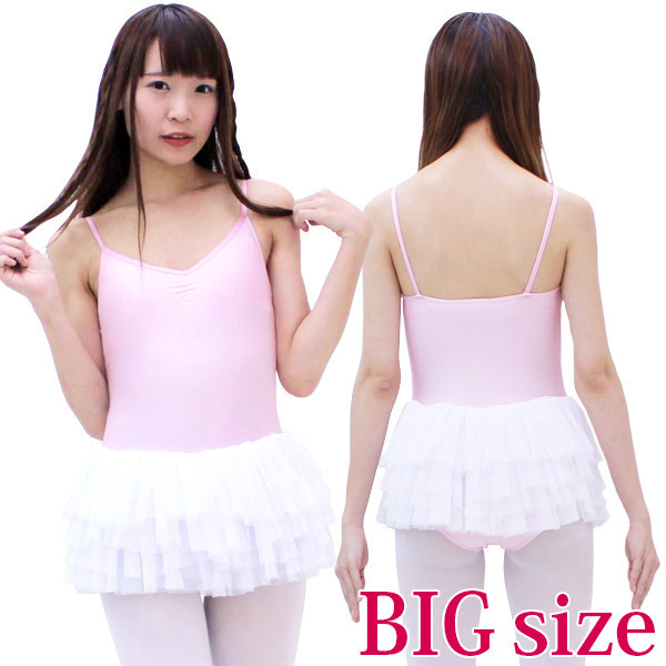 ■チュールスカート付きキャミソールレオタード ピンク×白 BIG