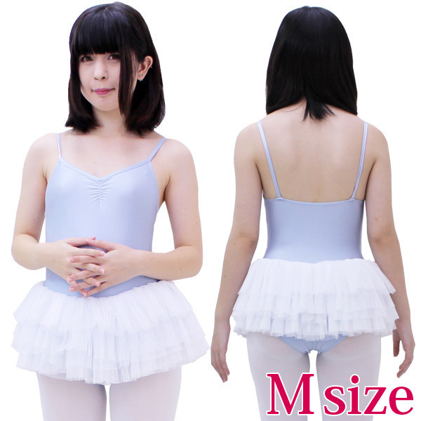■チュールスカート付きキャミソールレオタード 水色×白 M
