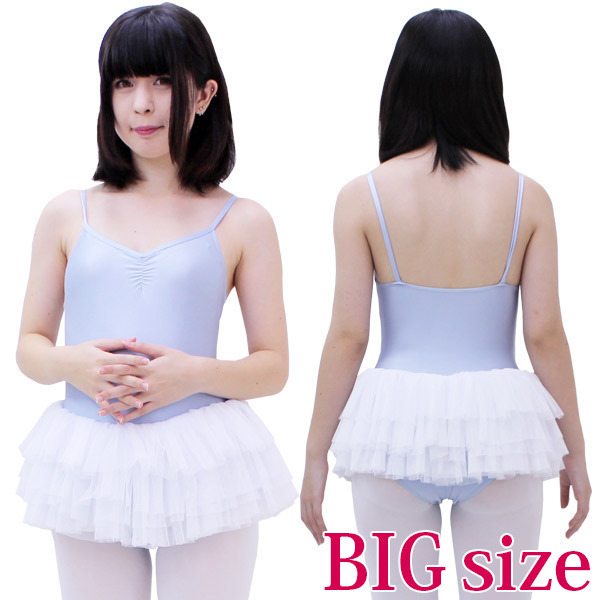 ■チュールスカート付きキャミソールレオタード 水色×白 BIG