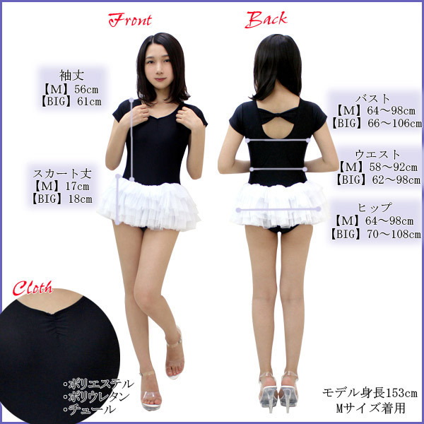 HOME > バドガール・レースクイーン > チュールスカート付き半袖レオタード(後ろリボン) 黒×白 M