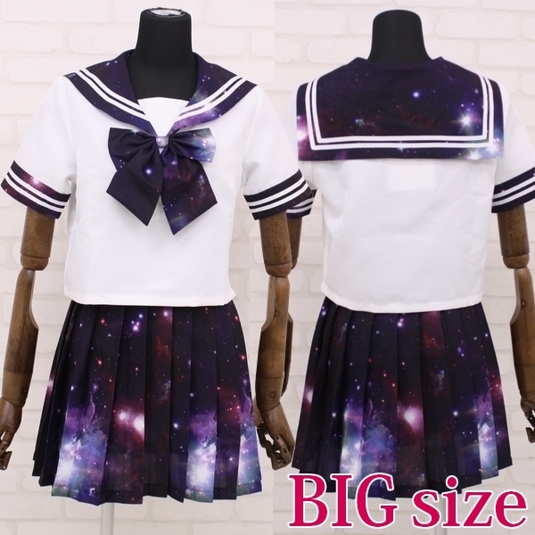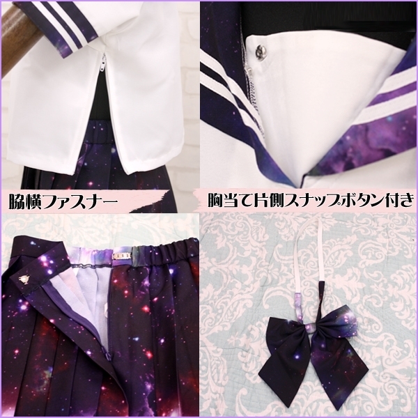 数多の星や銀河が美しい宇宙柄がプリントされたセーラー服コスチューム!黒や白のニーハイからハイソックスまで何でも合わせられます。