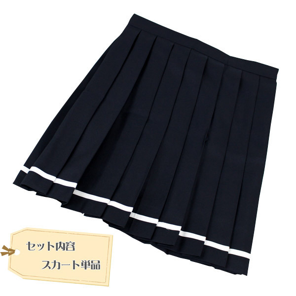 Mサイズ:W66〜72cm スカート丈45cm セット内容:スカート単品(横ファスナー、アジャスター調節可) 素材:ポリエストル100% 無地プリーツスカート単品 色:紺×白ライン
