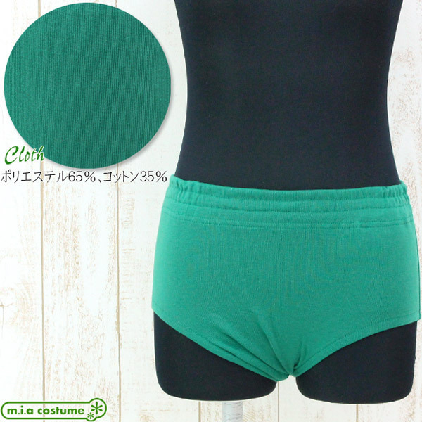 ウエストゴムが優しくフィットする緑色のブルマ単品大きめサイズ。