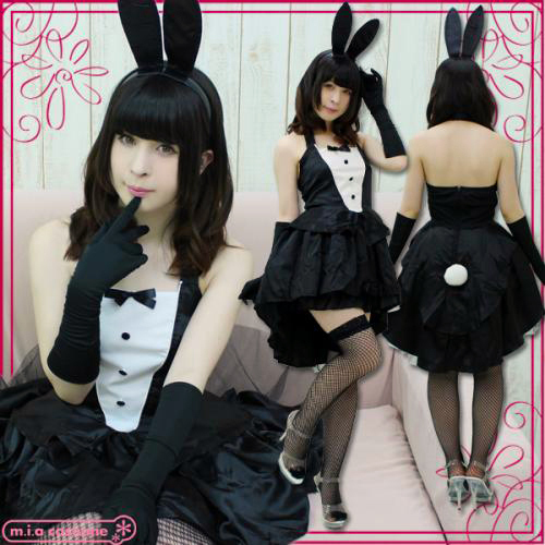 白くて丸い尻尾付きのワンピースに、ウサ耳付きカチューシャ、黒のグローブのセット!適度な肌魅せで女らしさを高めつつ可愛さにもこだわった白黒カラーのバニー衣装です。