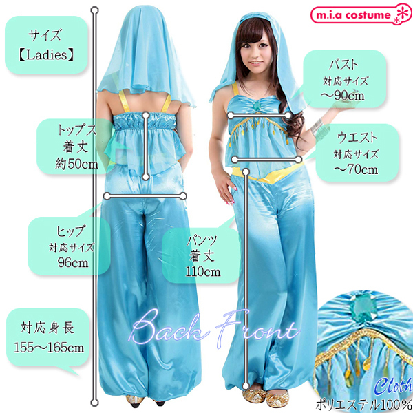 世界的人気のヒロインになりきるも良し、新年会&忘年会の余興やベリーダンスなどのステージ衣装としても◎