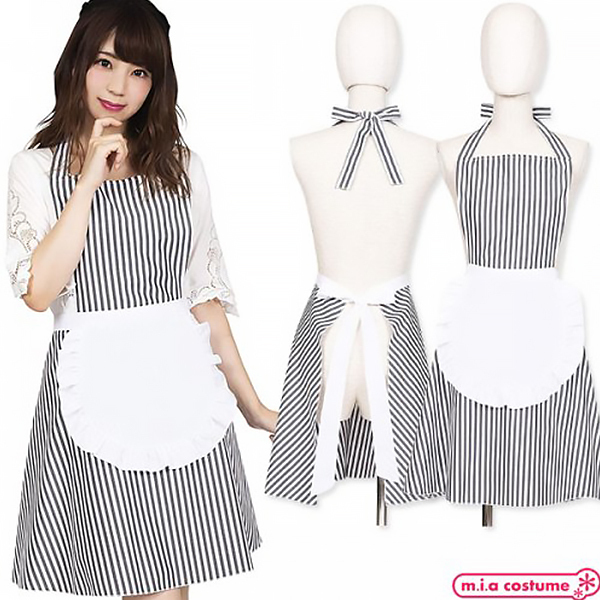 HOME > 小道具(ニーソックス・猫耳) > フリルストライプエプロン ブラック