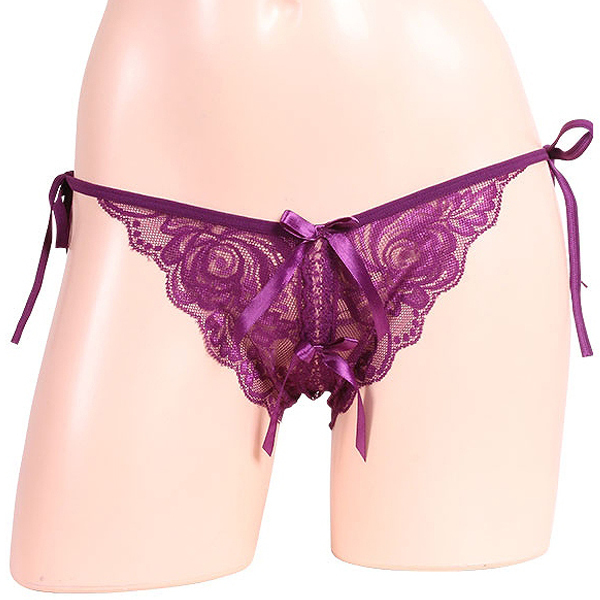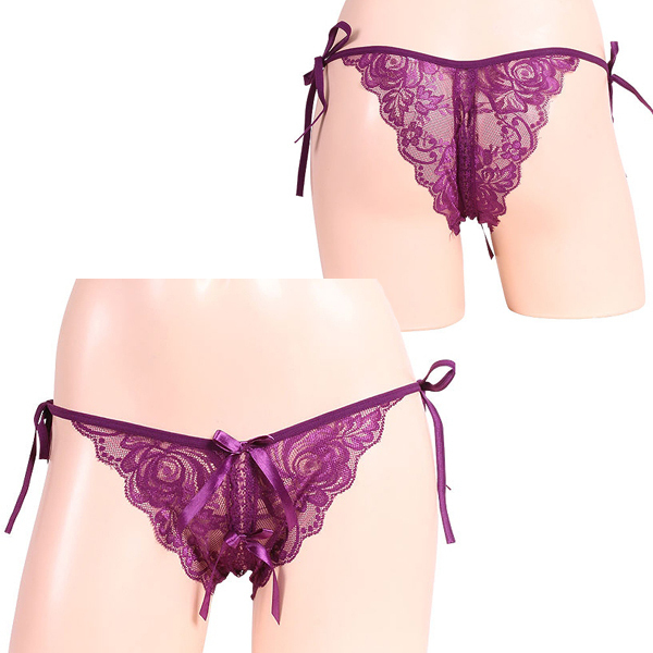 ■【410円★数量限定】女らしさ満開サイドリボンオープンショーツ パープル<お一人様1点限り>