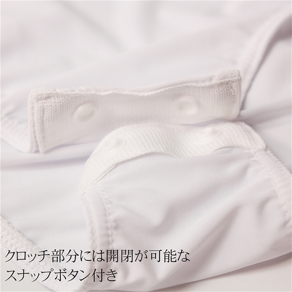 日本国内の工場で縫製され、伸縮性のある肌触りと薄っすらと透けるシースルー生地を使用したスナップボタン付きのレオタードです♪クロッチ部分に開閉が可能なスナップボタンを取り付ける事で、幅広いプレイに対応!U字ネックに半袖スリーブでレッグカットが浅めな王道デザインですが、クロッチ部分がスナップとなっているため、着けたままのプレイが可能となっています♪カラバリはブラックとホワイトの2色展開でこちらはホワイトとなっています♪